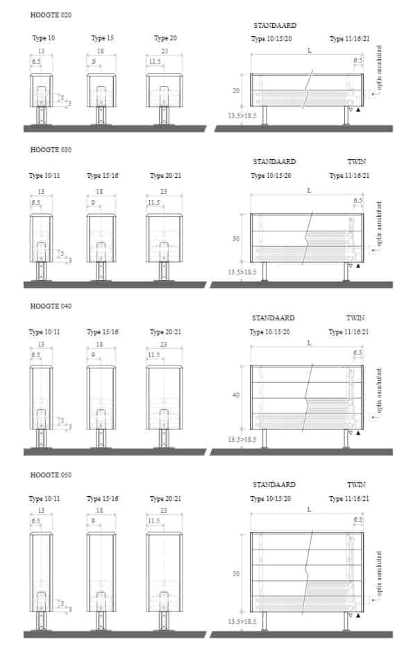 - De Jaga klassieker voor ruimtes met glas tot op de vloer. Zuinige Low-H2O technologie, maar op voeten.